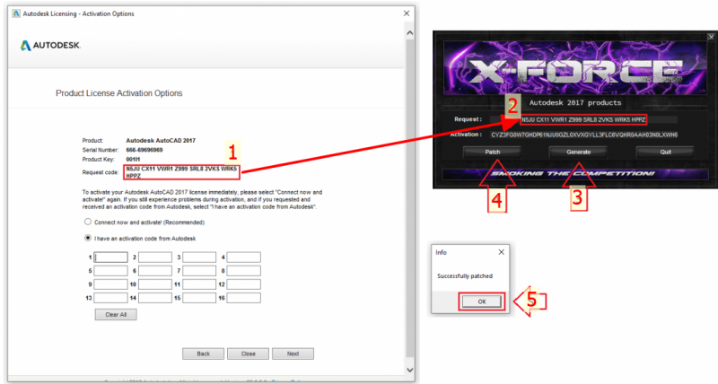 Bước 4: Tiếp bạn nhấn Request code ở bước 1 và copy để dán vào Request. Tiếp bạn nhấn Generate nhấn Patch tiếp copy dòng Activation rồi dán vào mục I have an activation code form Autodesk như hình,rồi bấm Next . Như vậy bấm Finish là xong