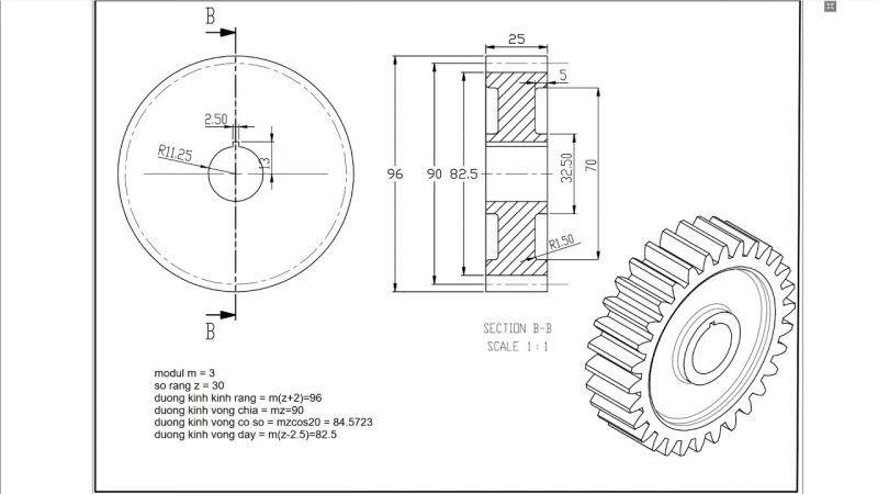 Bản vẽ CAD bánh răng tiêu chuẩn
