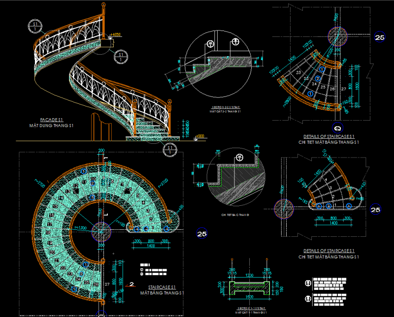 Thư viện cad một số chi tiết của cầu thang xoắn