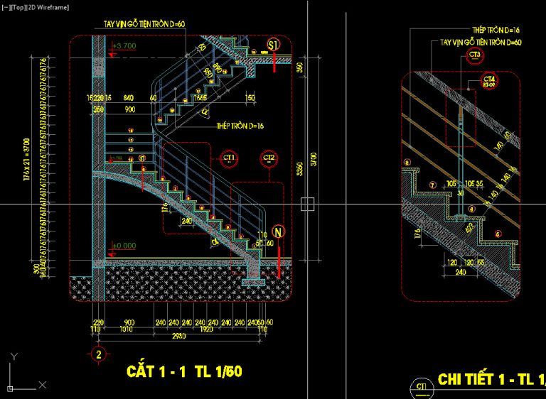 Bản vẽ cad cầu thang nhà phố